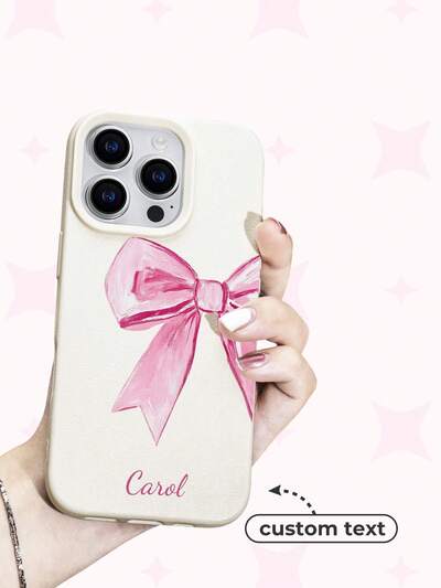 Cute Pink Bow Element White Faux Leather 1pc Customized Family, Couple, Friend, Pet, Name Engraved Pink Bow Vintage White Faux Leather Phone Case, Compatible With IPhone11, Compatible With IPhone12, Compatible With IPhone13, Compatible With IPhone14, Compatible With IPhone15, Compatible With IPhone16/16pro/16plus/16promax/16e/17/17air/17pro/17promax, Great Gift For Friends, Girlfriends, Season Picks, 2025phonecase, Cute Phone Cases Spring Easter Birthday Gift