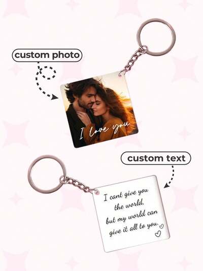 Custom 1pc Photo And Text Keychain, Valentine's Day, Birthday's Gift, Anniversaries, Couples Gift, Colorful,Cute,Adorable,Funny,Kawaii,Y2K,Stylish,Unisex,Casual,Custom,Personalized,Unique,Customized,Ideal Gifts For Him,Ideal Gifts For Her,Her,Boyfriend,Girlfriend,Family,Friends,School Supplies,Back To School,For Office,For School,For Classroom,For TeacherFor Dorm Rooms