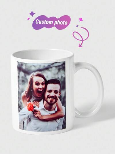 1pc Custom Photo Mug, Personalized Coffee Mug, Custom Photo Cup For Anniversary, Housewarming, Valentine's, Graduation, Mother's Day, Father's Day, Children's Day, Birthday, Wedding, Dining Room, Living Room, Kitchen, Bedroom, Office, Tea Room, Home Decor, Unique Gift For Women, Back To School, Happiness Booster