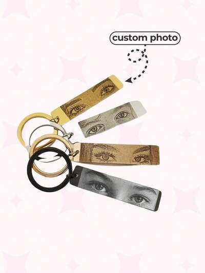 Customized Photo Eye Shaped Keychain, Stainless Steel Pendant Necklace, Fashionable Rectangular Keyring, Creative Personalized Eye Keychain, Unique Anniversary Jewelry Gift, Durable, Colorful, Cute, Funny, Kawaii, Y2K, Stylish, Unisex, Ideal Gifts For Him Or Her -Family, Friends, Teens, Students, School Supplies, Teacher Gifts, Office, Dorm Rooms, Custom Accessories
