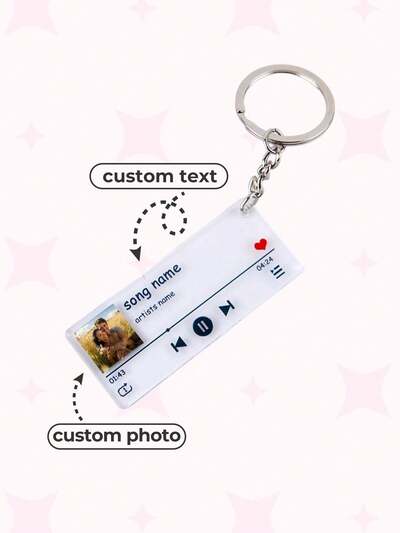 1PC Custom Acrylic Music Player Keychain, Personalized With Photo And Text, Engraved Stainless Unique Keyring – Cute, Funny, Stylish Gift For Couples, Family, Friends, Grandparents, Children, Boyfriend. Perfect For Anniversaries, Birthdays, Holidays, School Supplies, Back To School, Office, Classroom, Teachers, University, Colleagues, Dorm Rooms, Boys, Girls, Teenagers