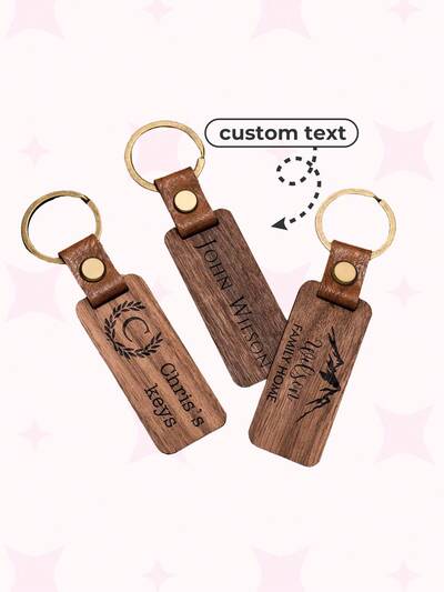 Personalized Walnut Wood Keychain, Custom Wood Key Chain, Birthday Anniversary Christmas Gift For Her Or Him, Gift For Mom Dad Engraved, Fashionable, Vintage, Contracted, Stylish, Fall Fashion, Grandparents, For Graduation, For Winter, For Fall/Autumn, For Holiday Finds Personalized/Customized Keychain, Christmas Accessories