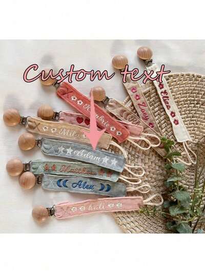 1pc Personalized Embroidered Pacifier Clip, Custom Embroidered Soft Fabric Pacifier Clip Chain - Friend Gift/Comfort Gift/Wooden Chain Gift/Holiday Gift/Birthday Gift/New Year Gift, Exquisite High Quality, Unique, Ideal Gift For Him, Also Suitable For Anniversary, Valentine's Day, Mother's Day, Wedding, Housewarming, Formal Dinner, Custom Party Accessories, Summer Vacation, Holiday Calendar, Etc.