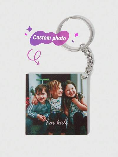1PC Personalized Acrylic Keychain 5*5cm Square Customizable Photo/Text, Commemorative Gift For Anniversary, Couples, Friends, Family, School Supplies, Back To School, Office, Classroom, Teacher, University, Colleague, Dorm Rooms, Boys, Girls, Teenagers, Junior High, Middle School, High School, Senior, College, Freshman, Sophomore, Underclassmen Gift
