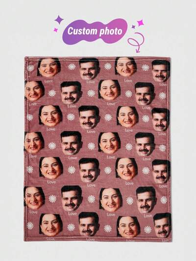 1pc Custom Face Blanket For Bed – Personalized Christmas Gifts Blanket With Photo And Name, Unique Throws Bedding Blanket, Collage Blanket, Best Friend, Family, Wedding, Birthday, Mother's Day, Father's Day, Graduation, Housewarming, Sofa, Bed, Car, Tea Room, Living Room, Office Gift Ideas
